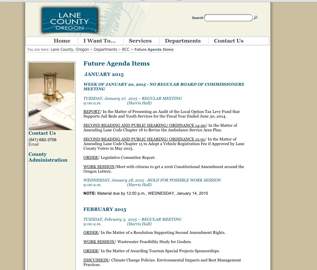 Obviously the commission is seeking to hide from the coming attacks on the citizens of Lane County. It makes no sense to consider possible action long after the damage has been done.