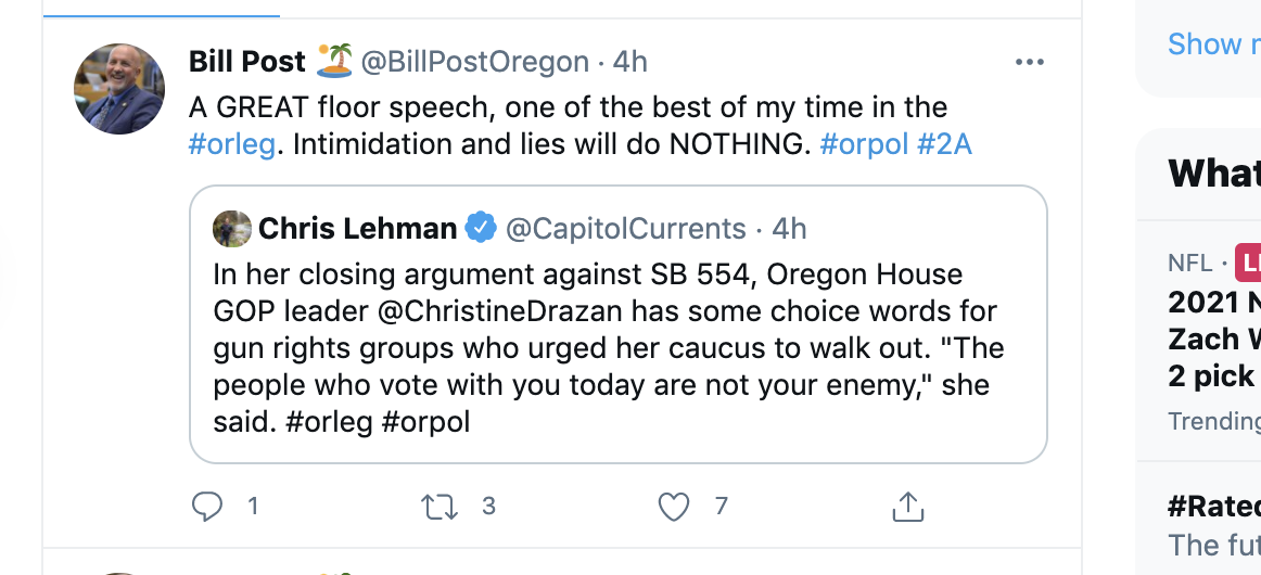 Drazan can continue to blame you and OFF for her unwillingness to stand up to the left.  But you and OFF don’t get  a voice in the legislature because we are not allowed in our own building anymore.