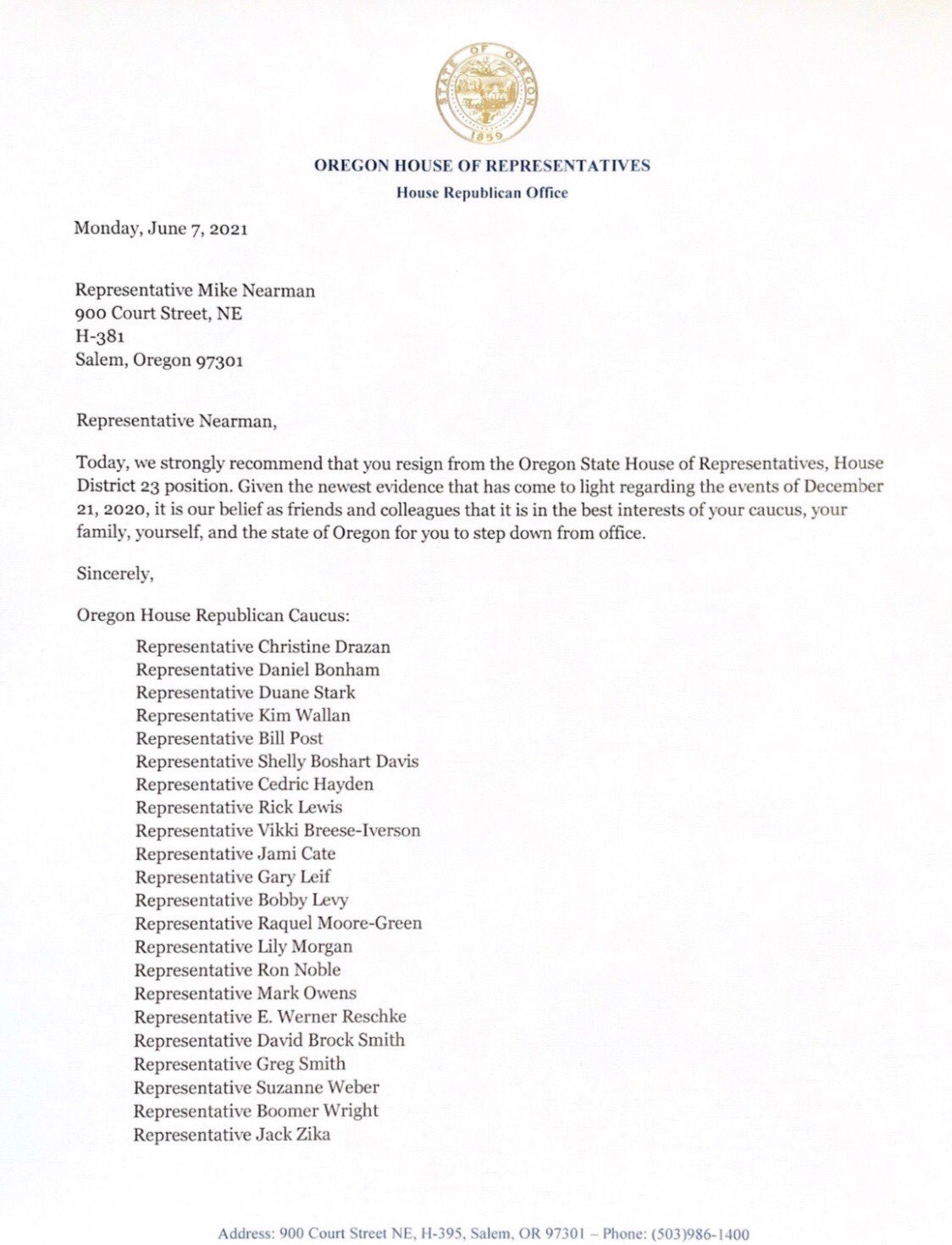 “Rep. Andrea Salinas, D-Lake Oswego, said it was, “upsetting to learn that Rep. Nearman was planning and coordinating an attack on our Capitol… The trauma of that day will not leave with Rep. Nearman.”